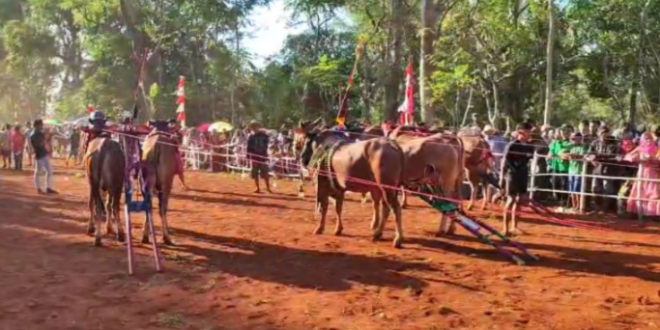 KARIMATA.NET, SUMENEP – Sebanyak 40 pasang sapi hias memeriahkan Karapan Sapi Hias atau Sapi Tangghek di Desa Langsar Kecamatan Saronggi, Kabupaten Sumenep. Tradisi tahunan ini bukan hanya hiburan rakyat, tetapi juga digarap sebagai media edukasi bagi generasi muda.