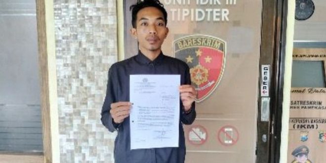 Foto: Fauzi, wartawan JTV di Pamekasan Saat Memperlihatkan Surat Laporan. (Ist-Karimata)