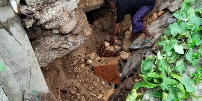 Rumah Tingkat di Bantaran Sungai Jalan Amin Jakfar Pamekasan Amblas, Diduga Akibat Ketidakstabilan Tanah