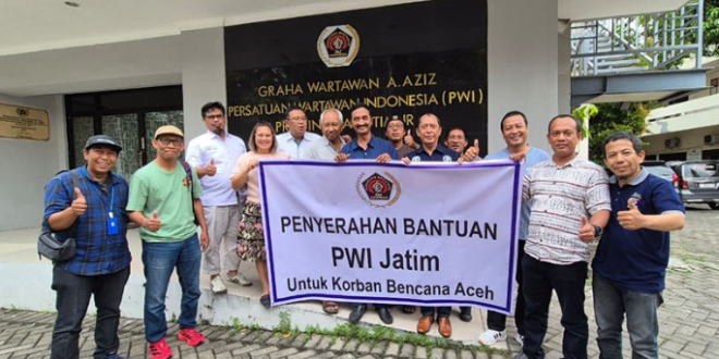 KARIMATAMEDIA, SURABAYA– Wujud solidaritas membantu sesama yang mengalami musibah, pengurus Persatuan Wartawan Indonesia menyalurkan bantuan untuk korban bencana di Aceh. Bantuan berupa uang berasal dari sumbangan pengurus dan anggota PWI Jatim serta pihak lain.