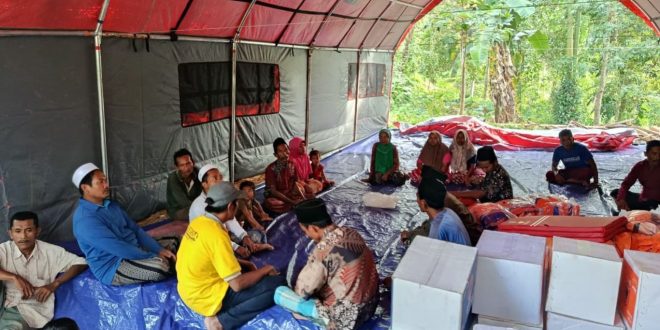 “Alhamdulillah sudah ada tenda dari BPBD dan Brimob. Bantuan juga datang berupa alas tidur, selimut, alat mandi, sembako, serta matras dari Dinsos,” jelasnya.