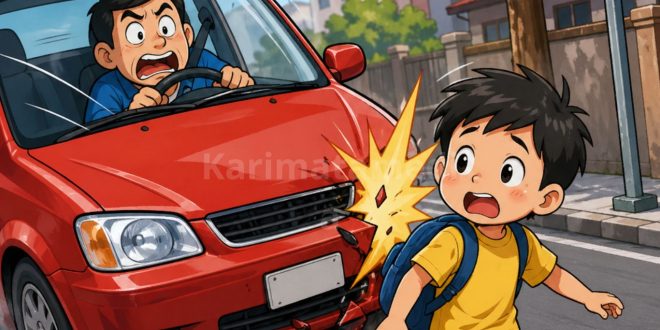 KARIMATAMEDIA, PAMEKASAN – Kecelakaan lalu lintas yang melibatkan seorang anak kecil terjadi di Desa Panaan, Kecamatan Palengaan, Kabupaten Pamekasan, Minggu (26/04/2026) sekitar pukul 12.40 WIB.