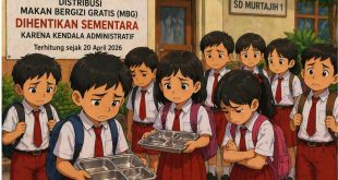 KARIMATAMEDIA, PAMEKASAN — Pendistribusian Program Makan Bergizi Gratis (MBG) di SDN Murtajih 1 dihentikan sementara waktu sejak Senin (20/04/2026). Berdasarkan surat pemberitahuan resmi, penghentian tersebut disebabkan adanya kendala administratif. Kepala Sekolah SDN Murtajih 1, Sakrani, membenarkan penghentian sementara itu. Keputusan tersebut merujuk pada surat pemberitahuan yang menyatakan distribusi MBG belum dapat dilanjutkan hingga waktu yang belum ditentukan. “Dalam surat pemberitahuan …