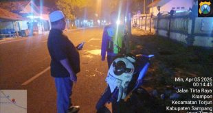 KARIMATAMEDIA, SAMPANG – Kecelakaan lalu lintas terjadi di Jalan Raya Torjun, tepat di depan Kantor Kecamatan Torjun, Kabupaten Sampang, Minggu (05/04/2026) sekitar pukul 00.10 WIB. Kasi Humas Polres Sampang, AKP Eko Puji Waluyo menyampaikan, kecelakaan melibatkan truk barang nomor polisi L 8035 NJ yang dikemudikan Budianto (33), warga Pamekasan, dengan sepeda motor Honda Scoopy nomor polisi M 5475 GF yang …
